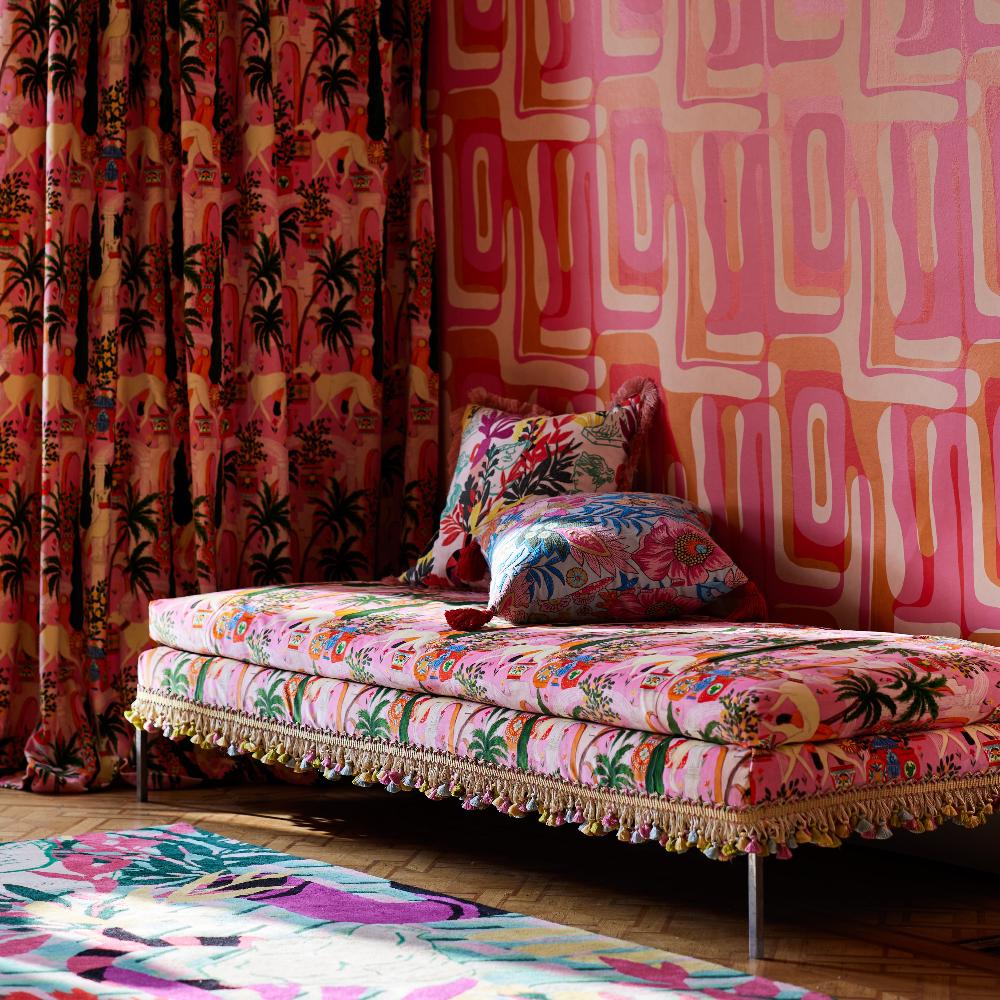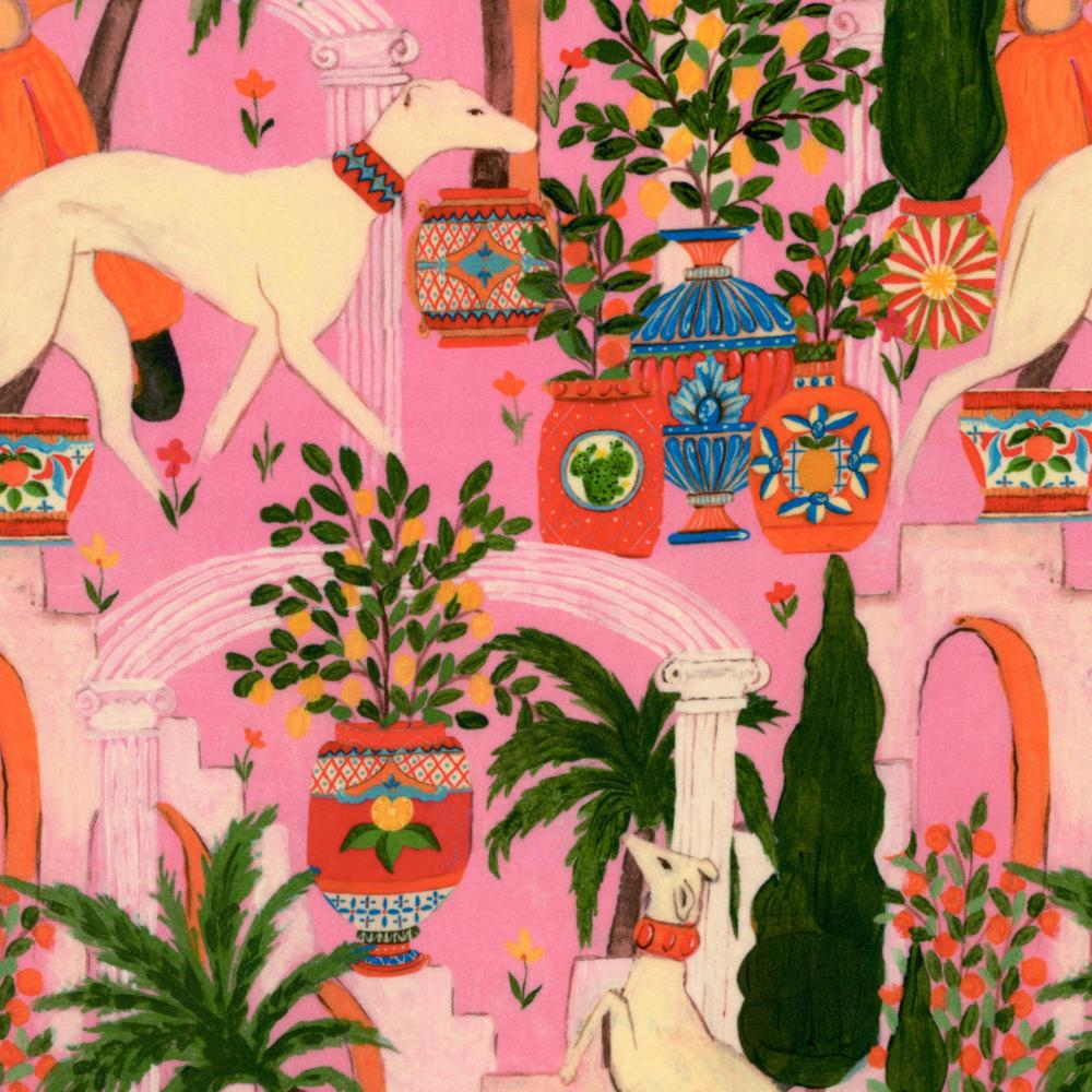 Dolce Vita on upea paksu puuvillasametti, joka soveltuu sekä verhoihin että verhoiluun. Kangas on saanut inspiraationsa italialaisista palatseista ja niiden elämästä. Kankaassa juoksentelevat ylväät koirat ja palmut heiluvat lempeästi tuulessa.