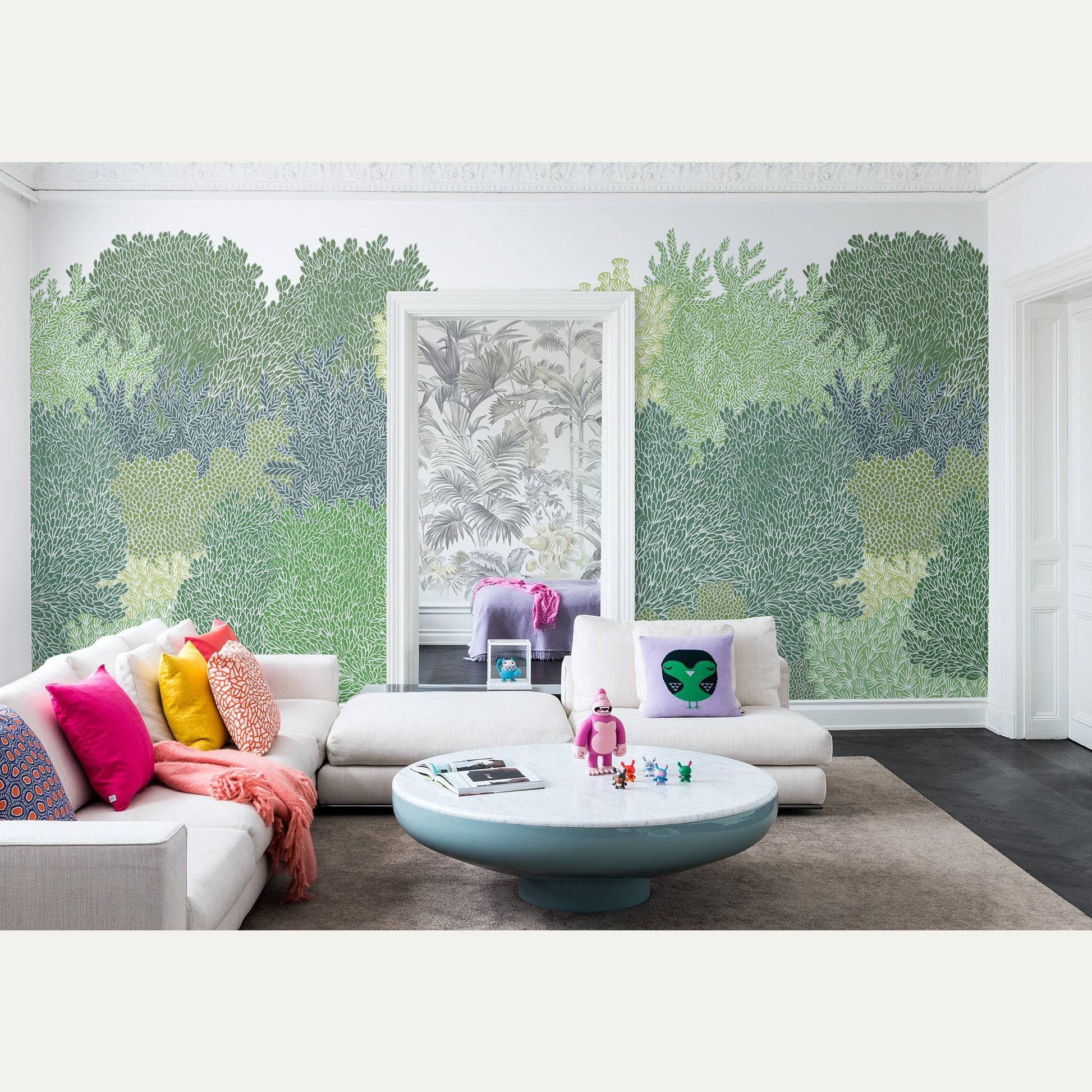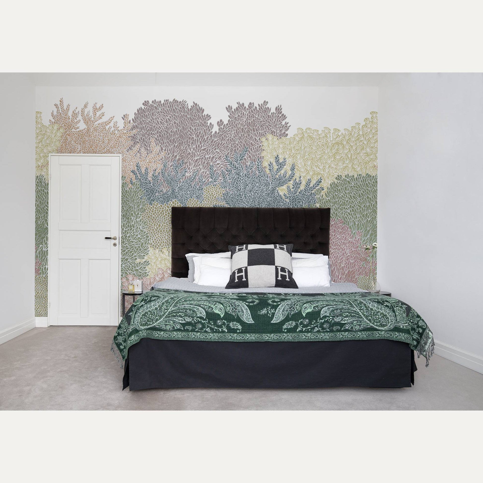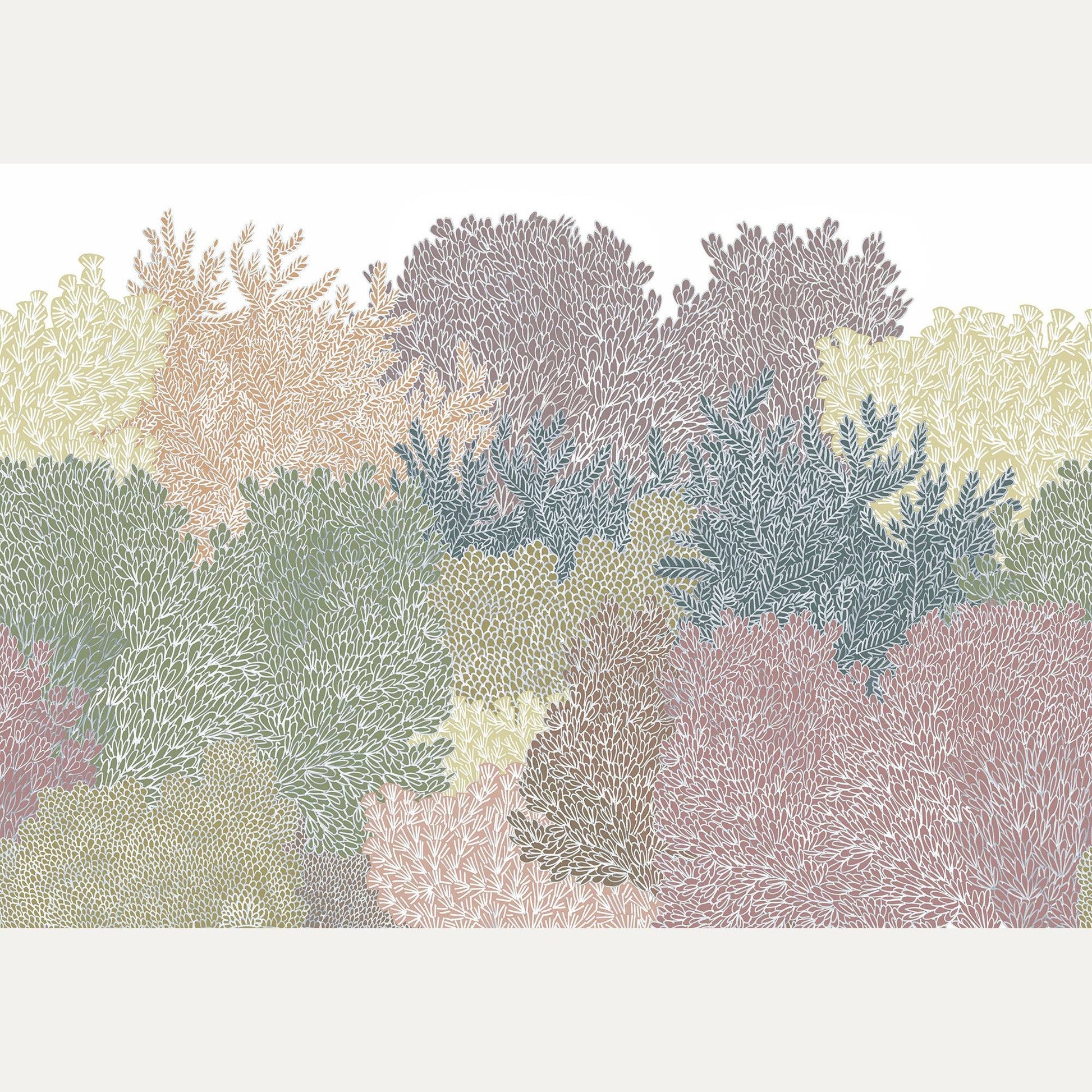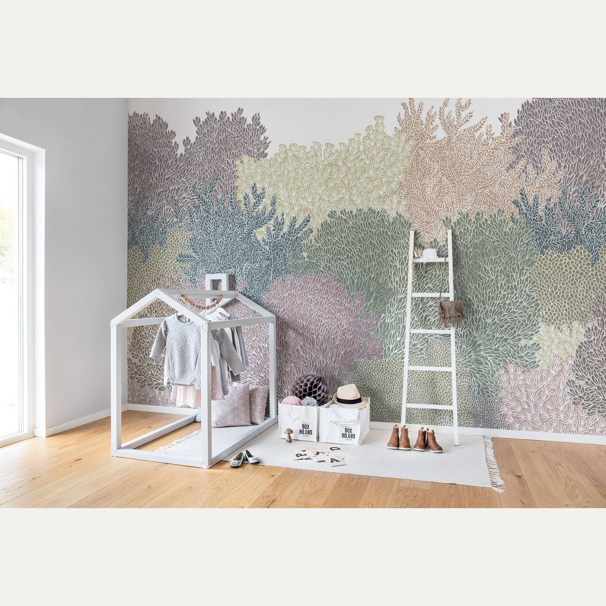 Kaunis, rauhallinen lehtimetsä. Pehmeät värit, jotka ovat saaneet inspiraationsa eri vuodenajoista, tekevät tapetista helposti lähestyttävän.