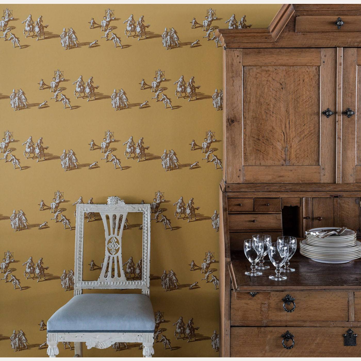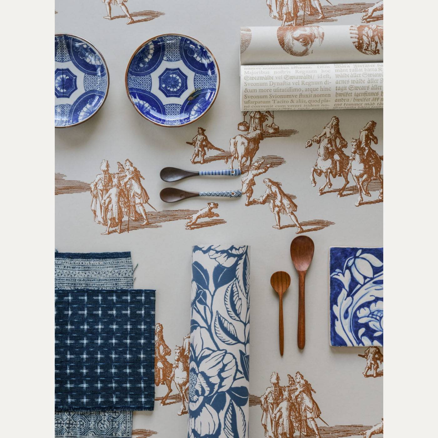 Ruotsalaisen Långelid / Von Brömssenin A Walk in the park-tapetissa on lainattu kuvia ruotsalaisesta 1600-luvulla kirjoitetusta kuvakirjasta. Historiaa havisevassa tapetissa kansa on muuttamassa pois kaupunkimiljööstä.