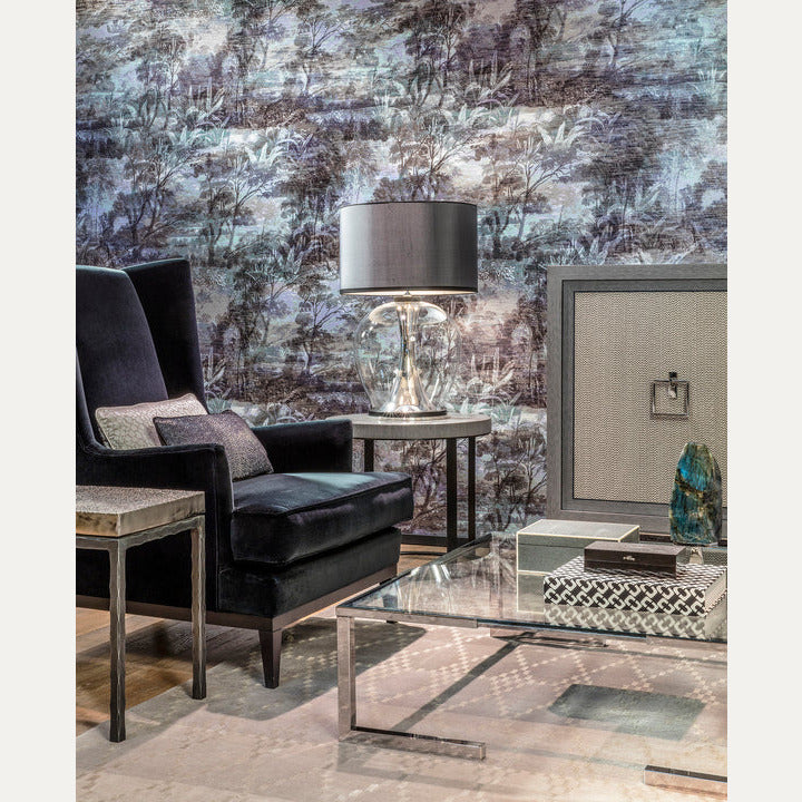 Avalon-mallistossa on tapetteja, joiden pinnat jäljittelevät luonnonmateriaaleja eri muodoissaan. Glade-kuosissa on kankaan kaltainen pinta, jossa on struktuuria ja trooppinen metsä muodostaa seinälle isoa kuviota.
