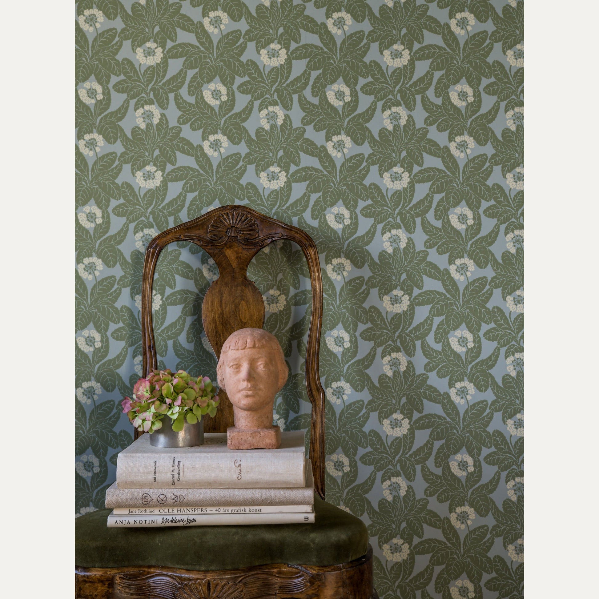 Ruotsalaisen Långelid / Von Brömssenin Primula-tapetissa on kuvattuna ihastuttava kukkameri. Esikot tuovat kesän tunnelmaa seinäpinnoille.