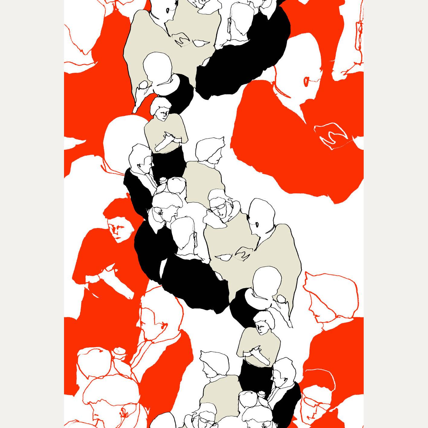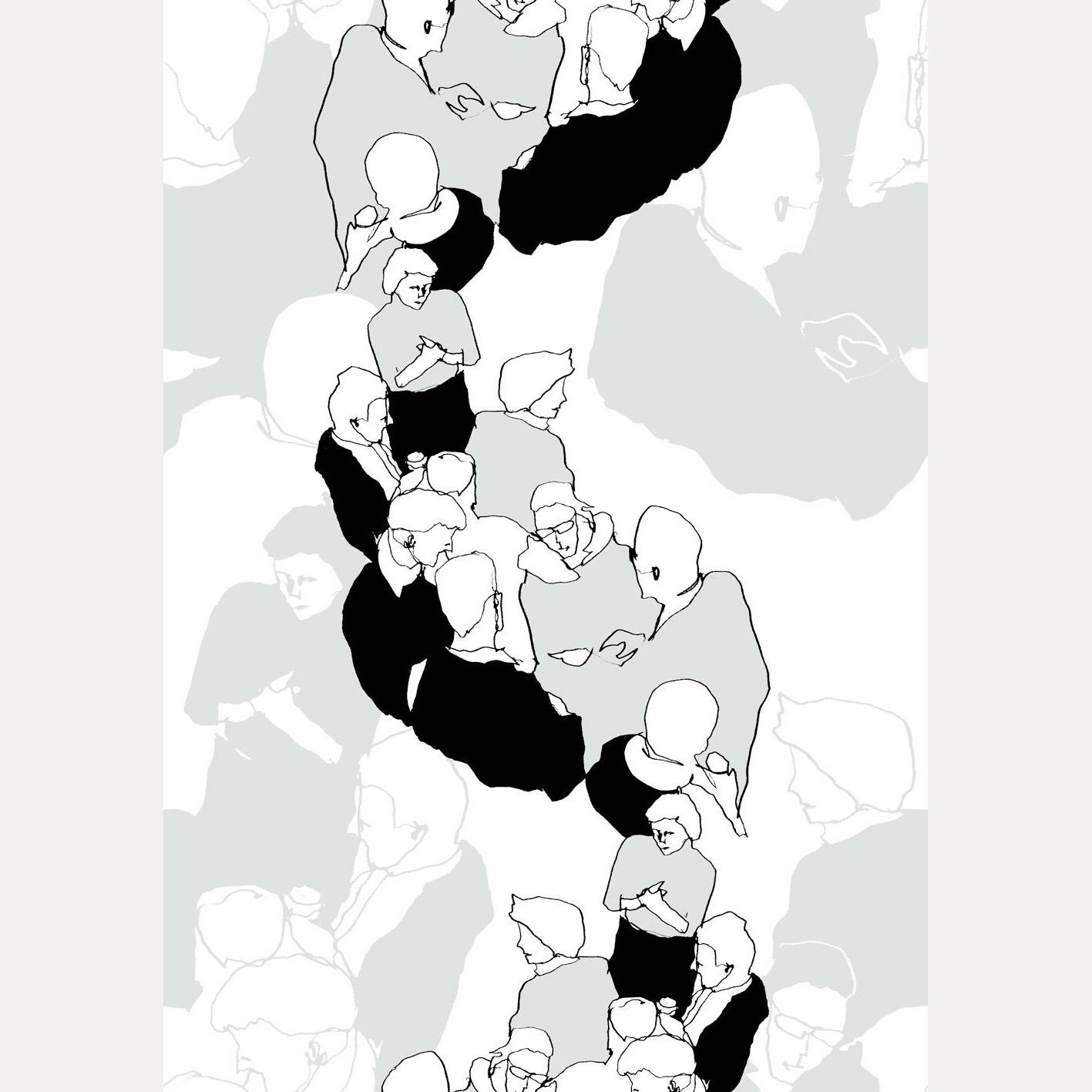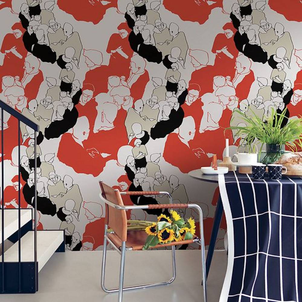 Ystävät-tapetti on kunnianosoitus kaikille ystäville. Piirrosmainen kuvio ja harkiten valitut ääriviivat tekevät tapettiin kolmiulotteisen vaikutelman. Maija Louekarin suunnitteleman kuosin taustalla on muisteluita kesäisestä nurmikentästä retkiseurueineen.